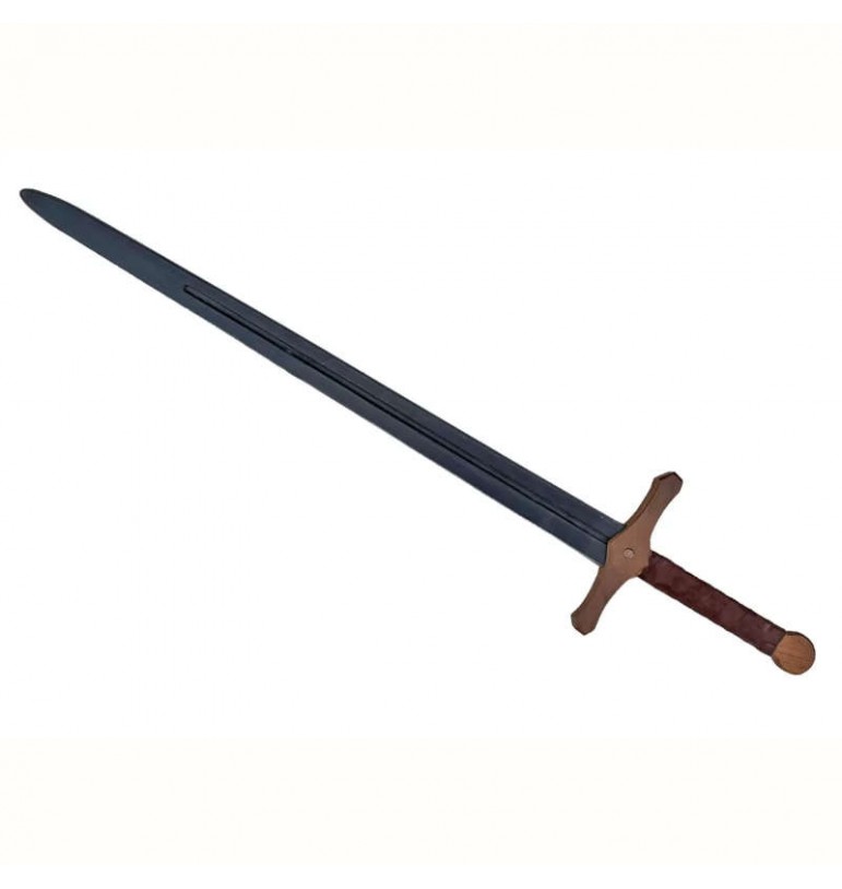 €18.95 Tax included5 1Whole Wood,5/ 5This wooden sword is a Templar model from the brand Kalid Medieval. This realistic toy faithfully reproduces the look of a genuine medieval weapon, with its solid wooden handle, its guard inspired by the Knights of the Order of the Temple, and its long black-painted blade. The handle is wrapped in synthetic leather.