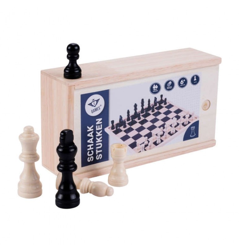 The wooden chess pieces are of good quality, made in India. These 32 chess pieces come with a pinewood storage box with compartments. The chessboard is not included (non-contractual photo)