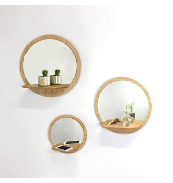 Miroir-tablette rond 30cm en bois de chêne