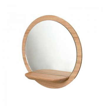 Miroir-tablette rond 48cm en bois de chêne