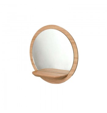 Miroir-tablette rond 40cm en bois de chêne